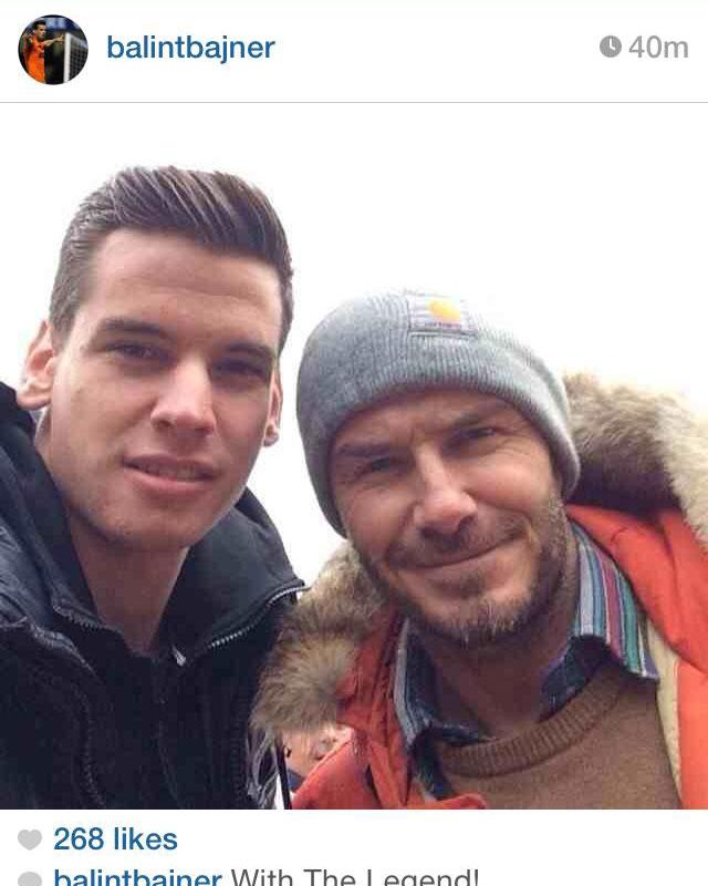 Bár a hazaiak magyar légiósa, Bajner Bálint a kispadról nézte végig a mérkőzést, mégsem tétlenkedett a hétvégén: David Beckhammel készített közös képet.